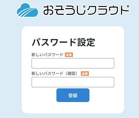 「○○○.osouji-cloud.net」(○○○はご自身で設定したサブドメイン)に、登録したメールアドレスとパスワードでログインする。
