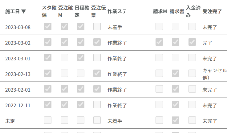 施工日順に表示されることにより、視覚的にスケジュールを把握することが出来る