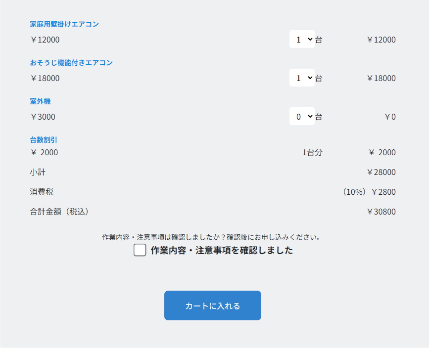チェックを付けると、「確認チェックボックス」が「カゴに入れる」ボタンの上に表示されるようになります。「確認チェックボックス」にチェックしないと「カゴに入れる」ボタンが押せなくなり、注文することが出来なくなります。