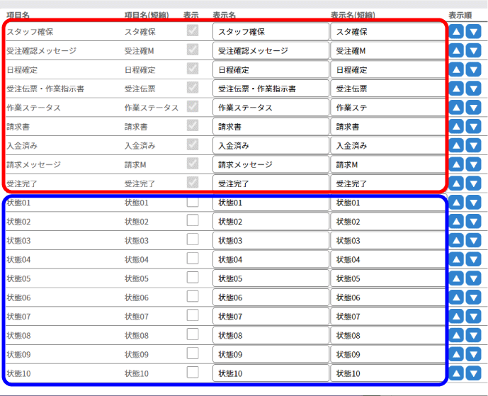 追加ステータスは、任意に名前を変えたり、順序を変えることが出来ます。