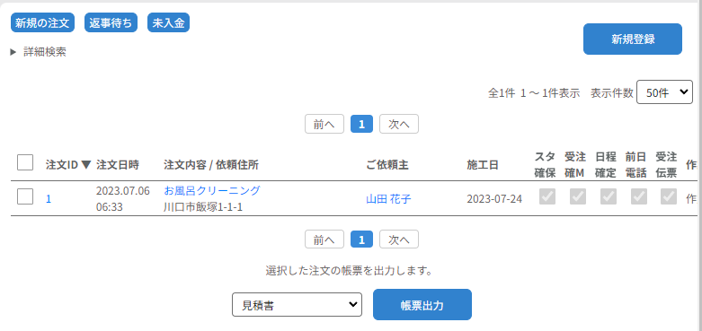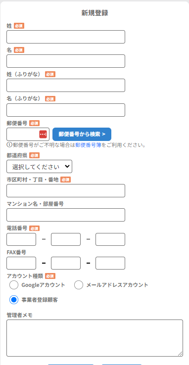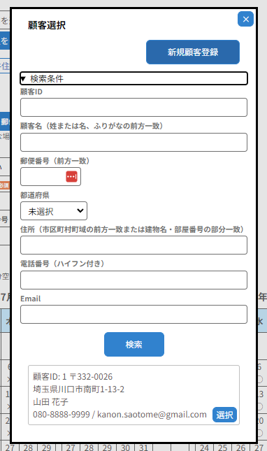 「新規顧客登録ボタン」をクリックして、顧客情報を登録する