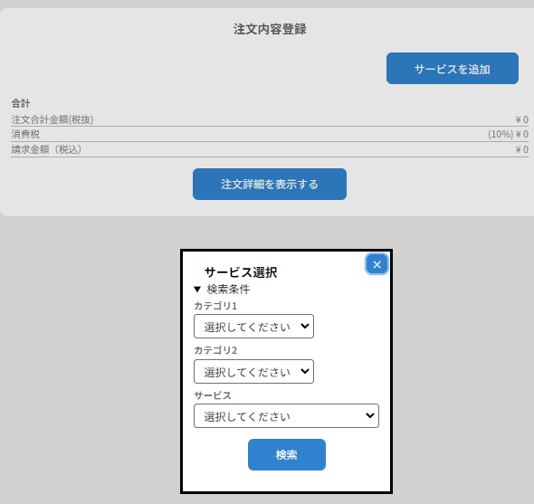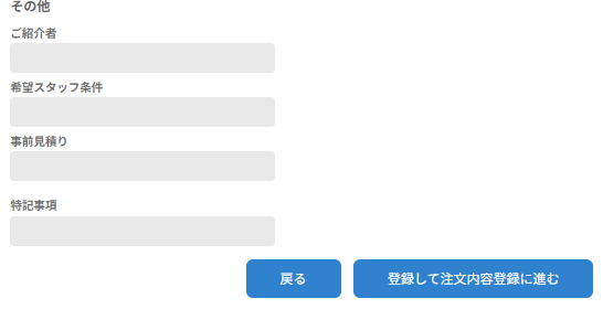 顧客情報や物件情報など入力したら、「登録して注文内容登録に進む」をクリックする