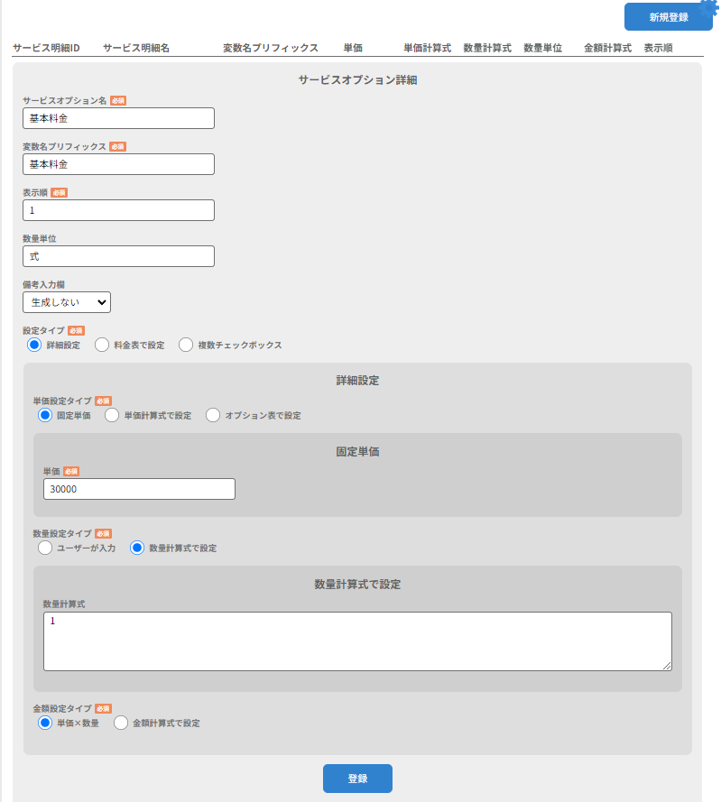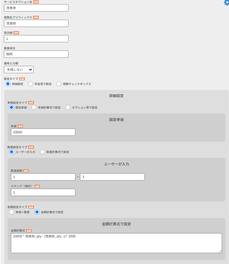 金額設定タイプ ⇒ 「金額計算式で設定」を選択し、計算式を設定する