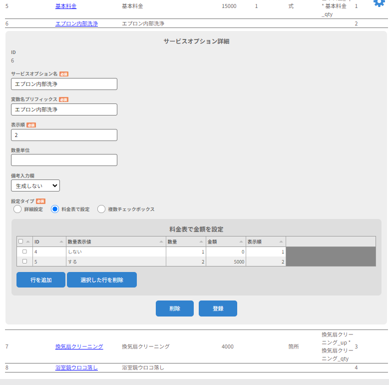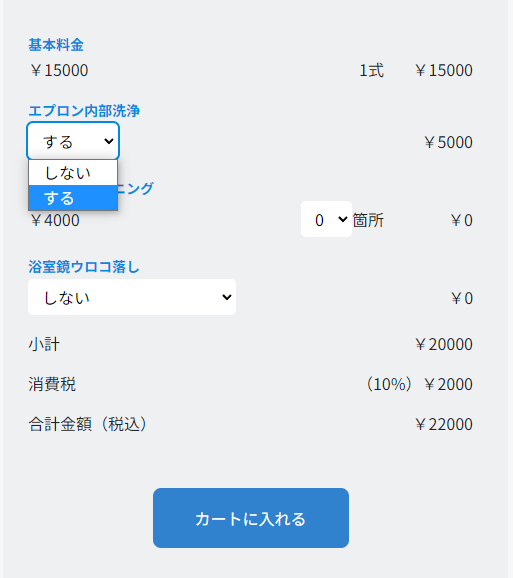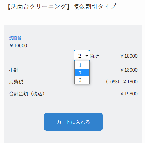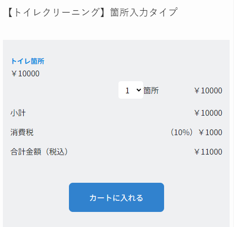 家に複数設置されているトイレやエアコン等を、「何か所」するか入力させるタイプ。自動的に料金が計算されます。