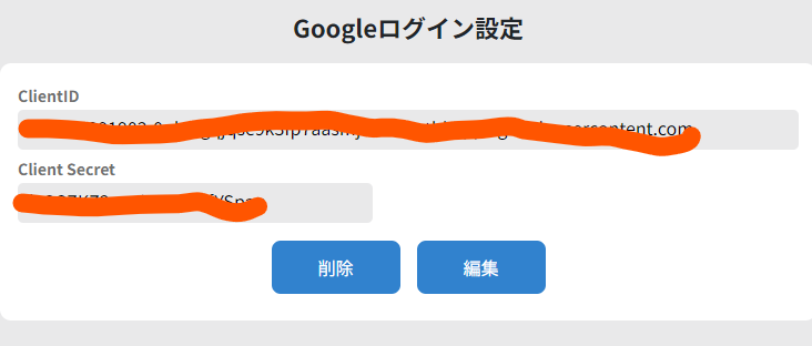 googleClientIDから発行される、ClientID と Client Secretを登録必要があります。