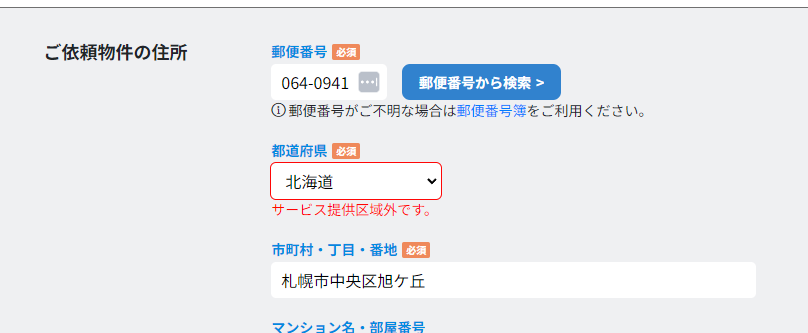 そうすると、たとえば北海道のお客様が注文する際に、エラー表示されます。この機能がないと全国から注文が入ってしまうため、その対応に追われてしまいます。